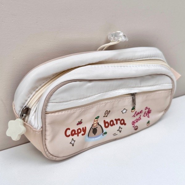 ¡La ternura hecha estuche! 💗 Esta cartuchera de capybara tiene diseño pastel, detalles adorables y varios compartimentos para que lleves tus lapiceras, marcadores, stickers o lo que quieras.