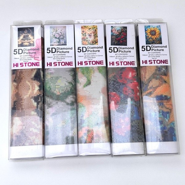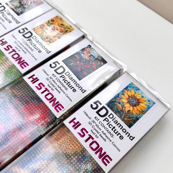 Cada kit incluye todo lo necesario para crear tu propio cuadrito brillante: lienzo, piedritas, lápiz aplicador, cera y bandejita.